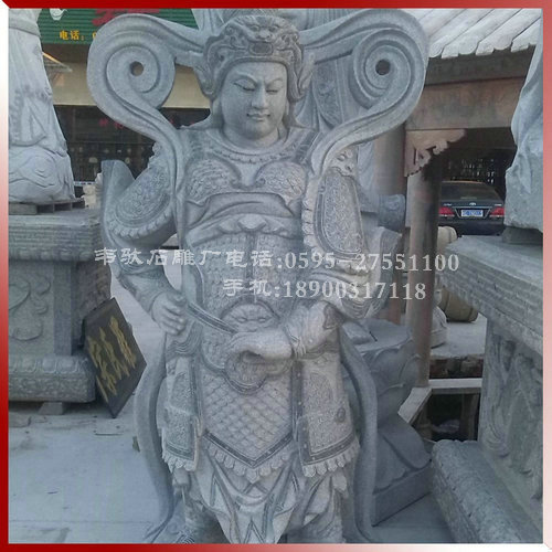 4、韋陀:韋陀菩薩是佛的護法神(佛教中另外還有一位護法天神韋天將軍)。相傳他姓韋名琨,是南方增長天王屬下八大神將之一,位居32員神將之首(四大天王每人手下有八神將)。據(jù)說,在釋迦佛入涅時,邪魔把佛的遺骨搶走,韋陀及時追趕,奮力奪回。因此佛教便把他作為驅(qū)除邪魔,保護佛法的天神。從宋代開始,中國寺廟中供奉韋陀,稱為韋陀菩薩,常站在彌勒佛像背后,面向大雄寶殿,護持佛法,護助出家人。