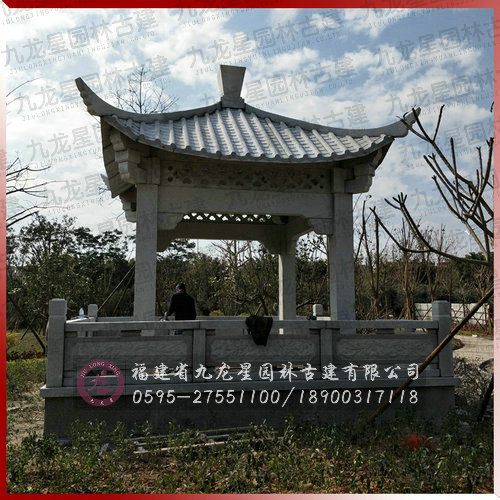 石雕涼亭安裝地點:福建泉州晉江 石雕涼亭安裝時間:2017.01 石雕涼亭材質(zhì)用料:張坂石 石雕涼亭設(shè)計尺寸:石雕涼亭總高5.2m配套板材、欄桿